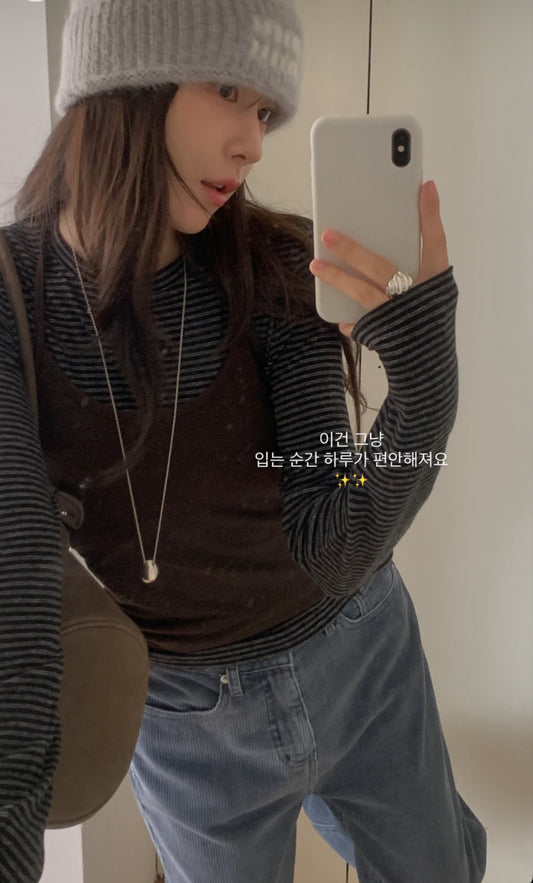 gray即納 wool rib string cardigan-3col