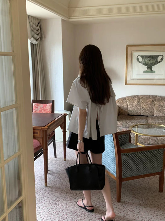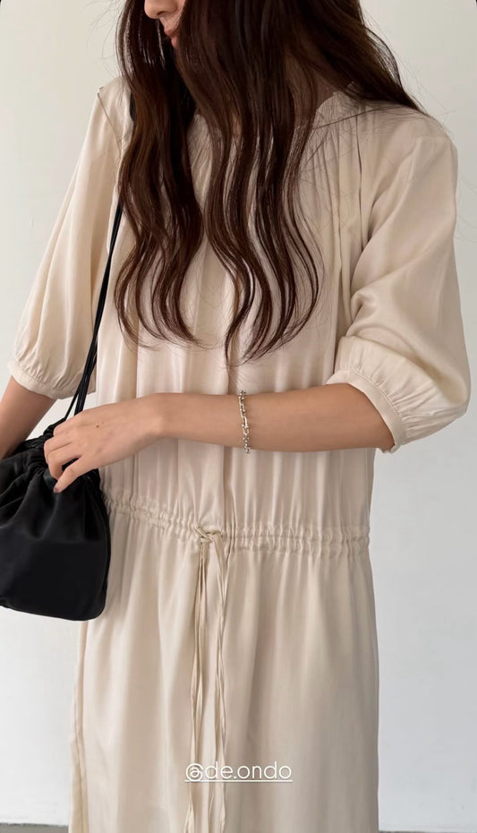 Ounce back ribbon shirring blouse-3col