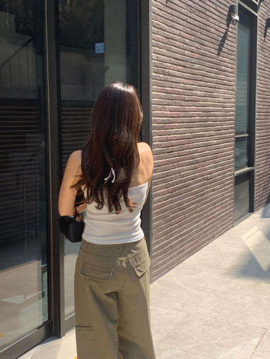 black xxs即納 Soi strap wide two-pintuck slacks-2col /ショート丈あり