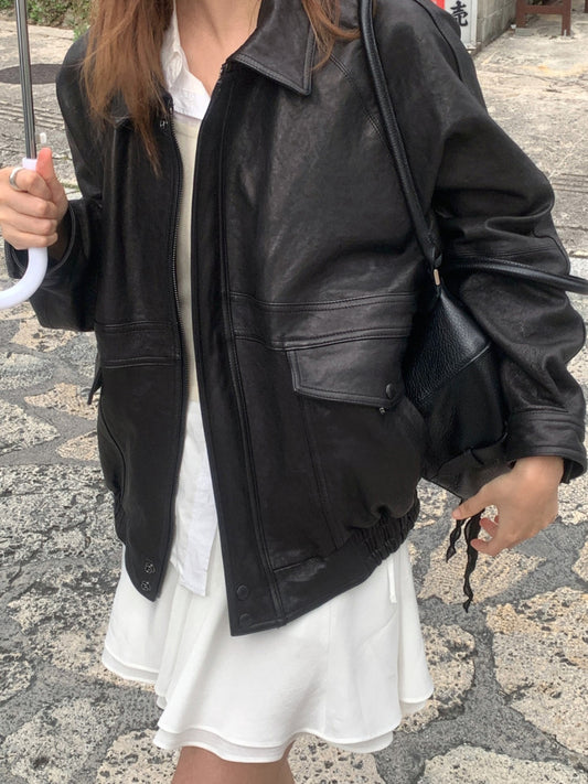 Washed litalian lamb leather blouson-2col