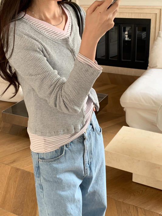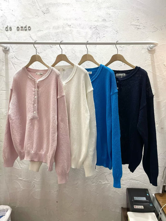 deondo henley neck loose knit-4col