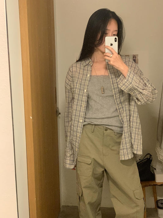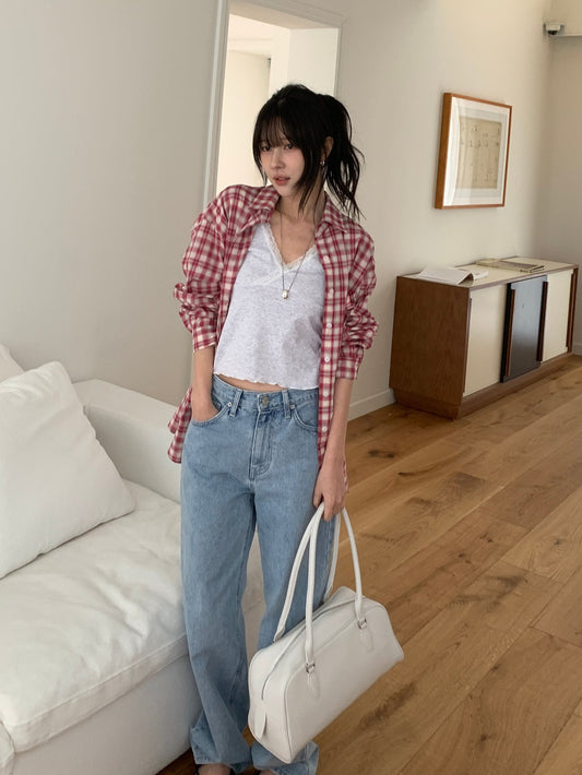 liter luna check frill blouse-2col