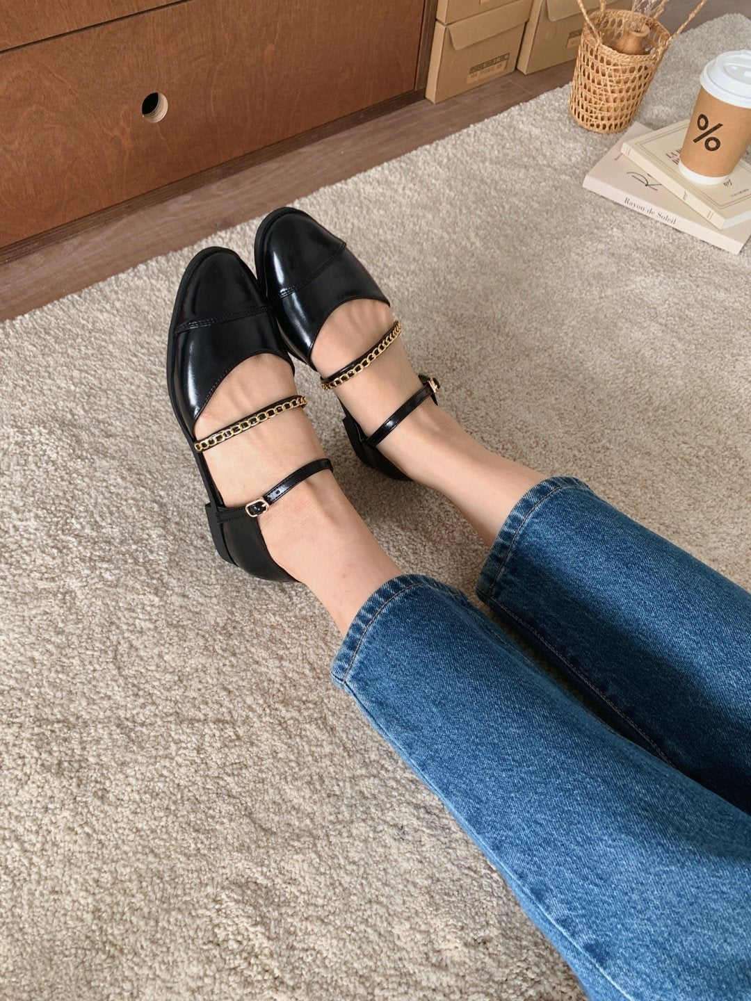 足の甲を包み込む高級感のあるゴールド色のチェーンの組み合わせが