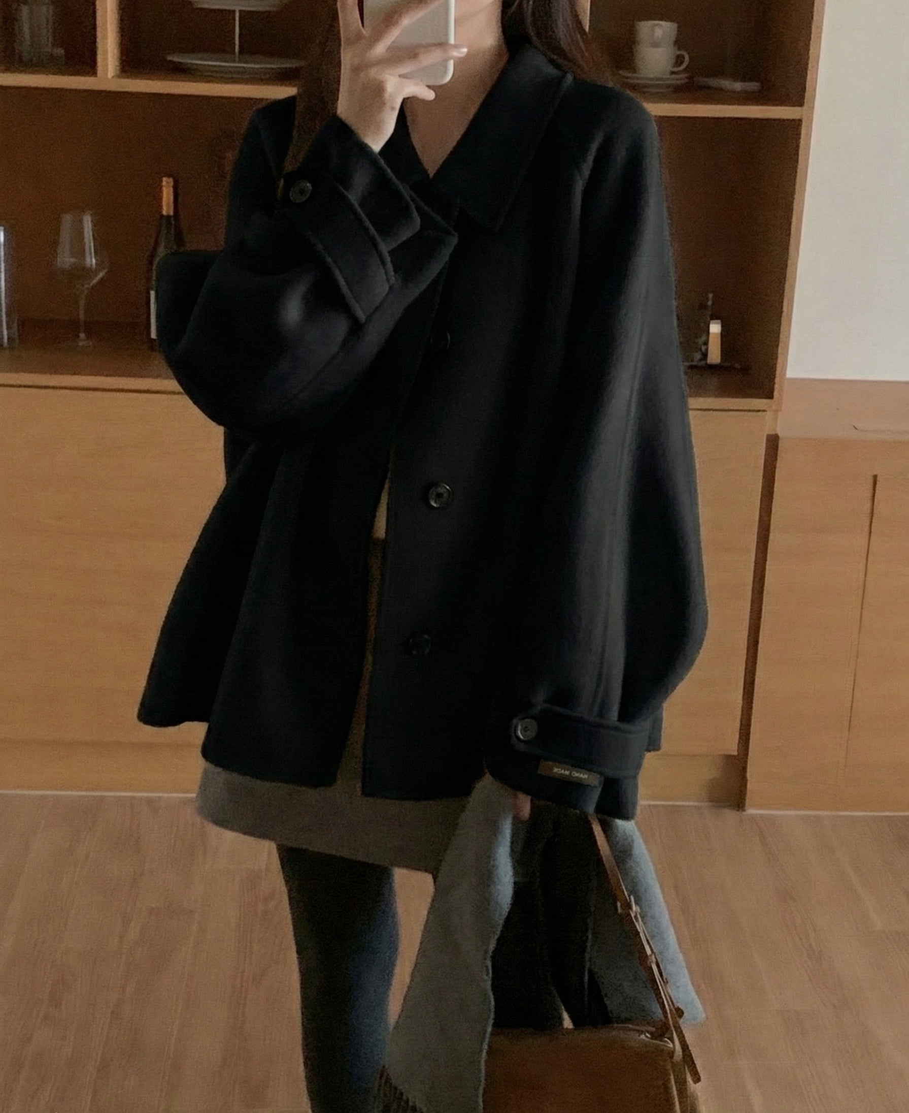 クラシックでシンプルなムードのハンドメイドコートです。