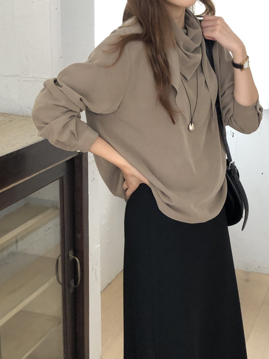 Luna brushed tencel scarf blouse-2col