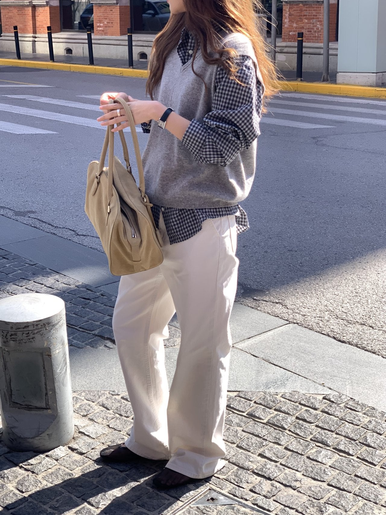 背面のアウトポケットにはフラップディテールを加え、カジュアルな雰囲気を強調しました。