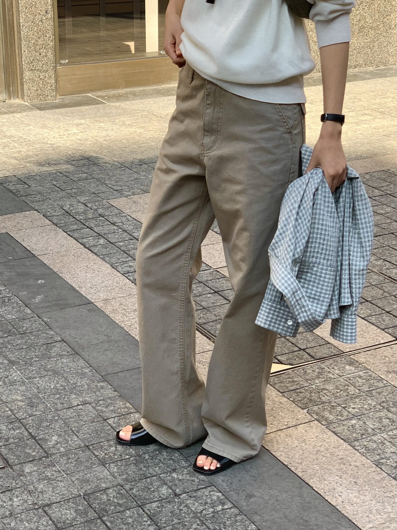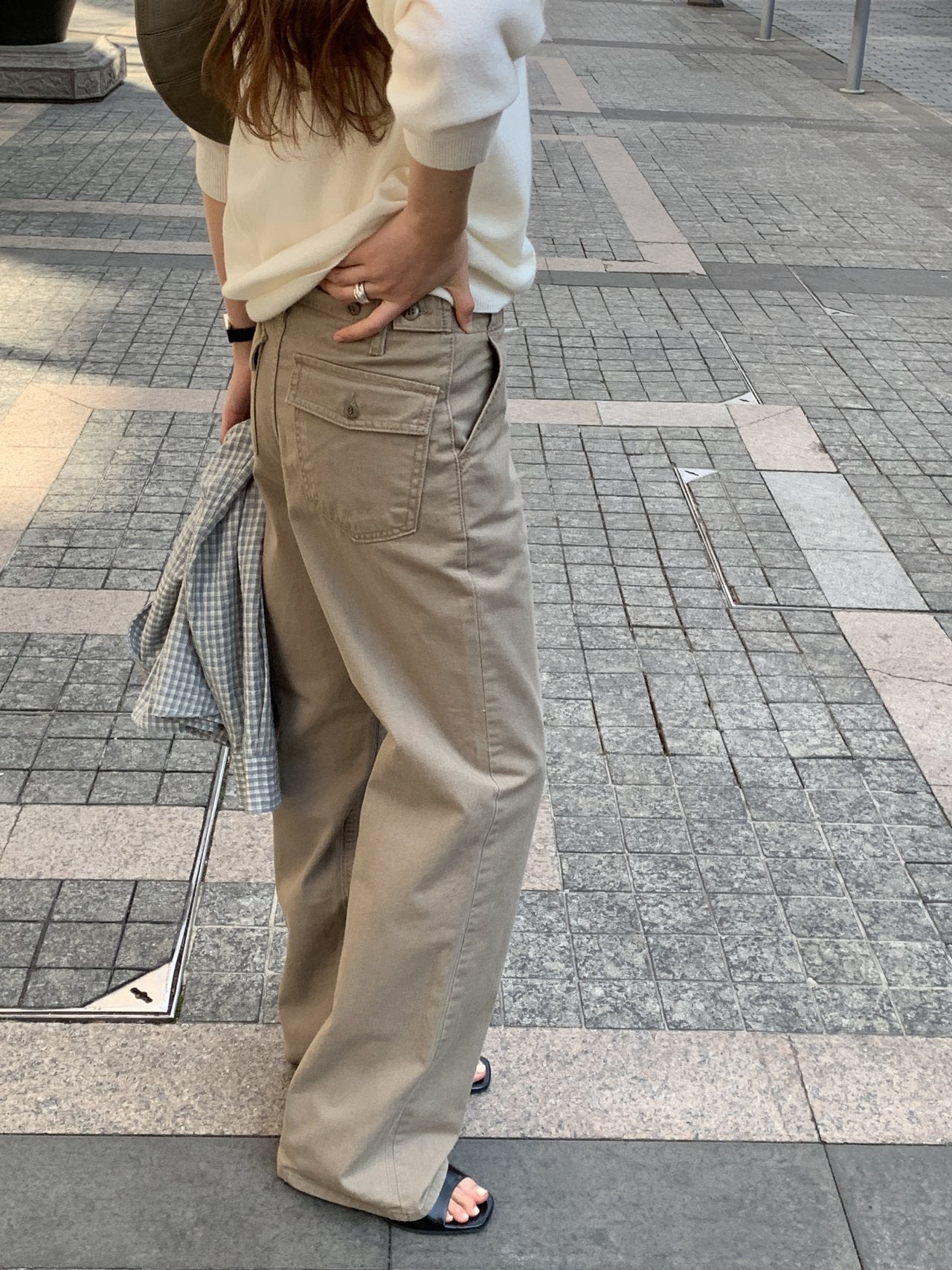 ウエストにはビジョディテールを加え、サイズ調整が可能で、過度にならないゆとりのあるレギュラーワイドフィットで、デイリーに着用しやすいです。
