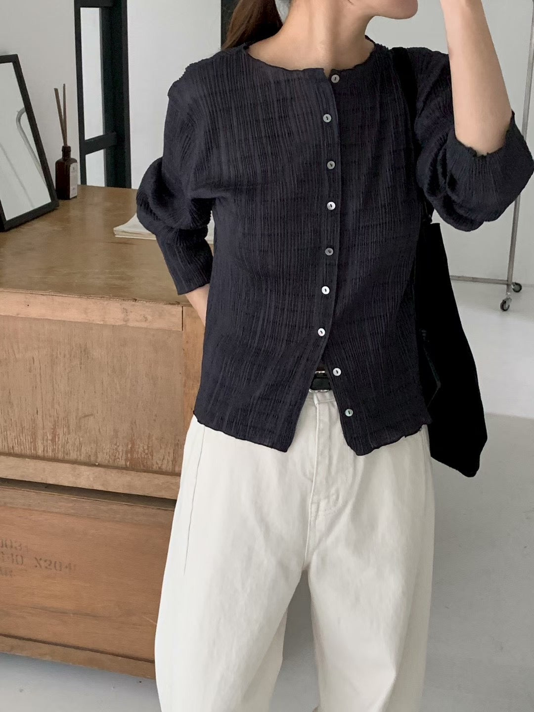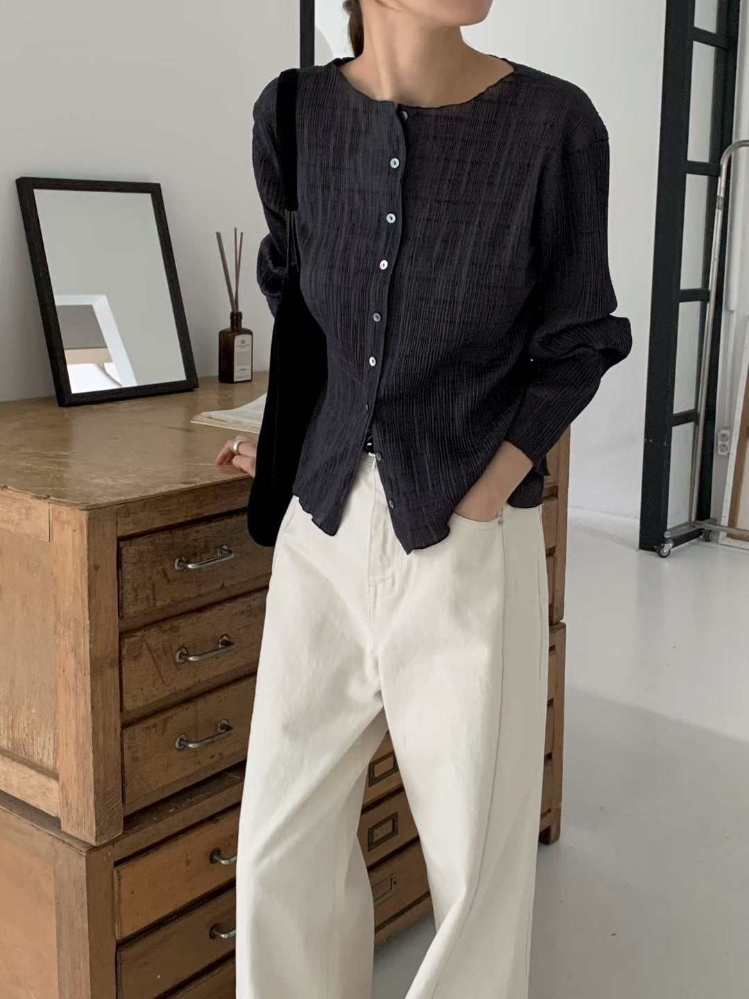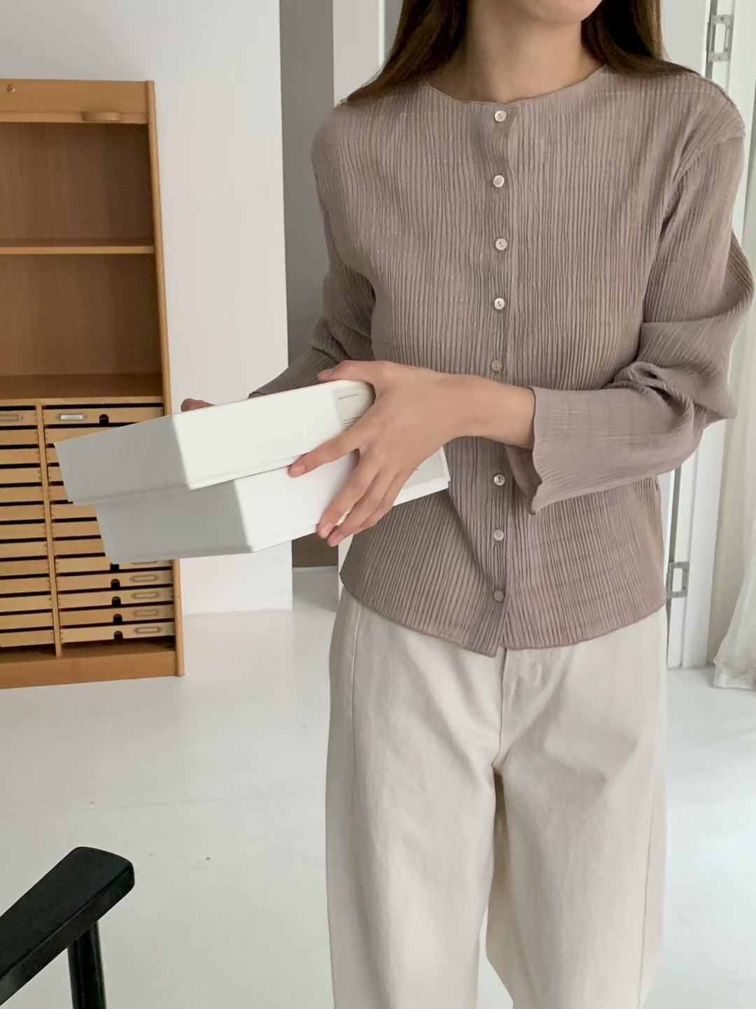 pleats cardigan-3col