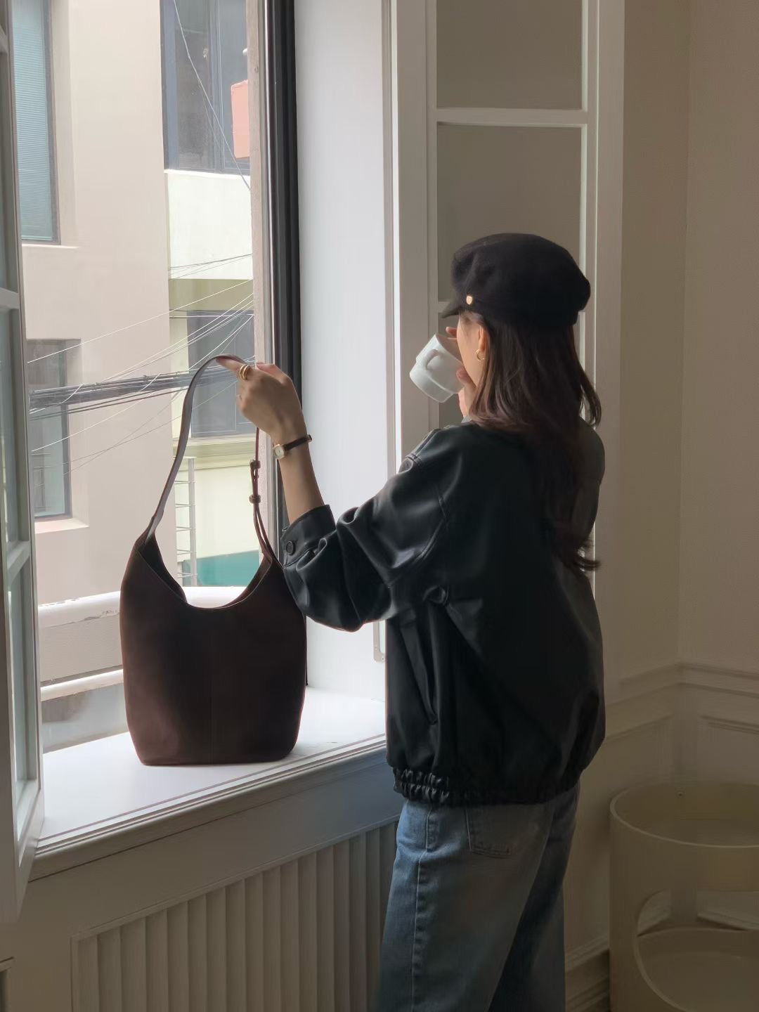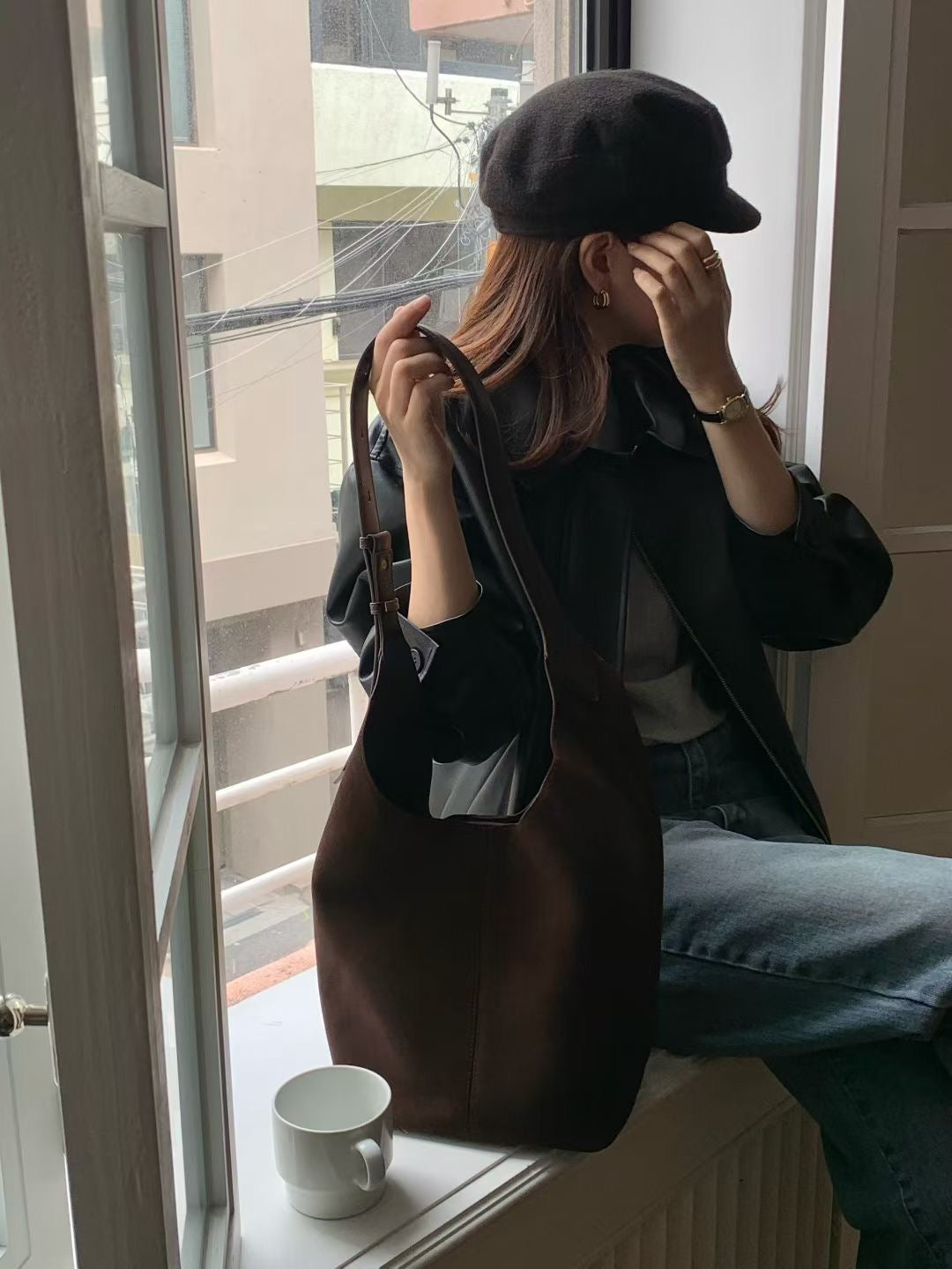 Square suede bag-3col
