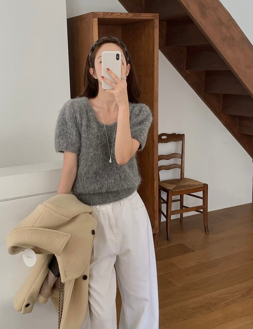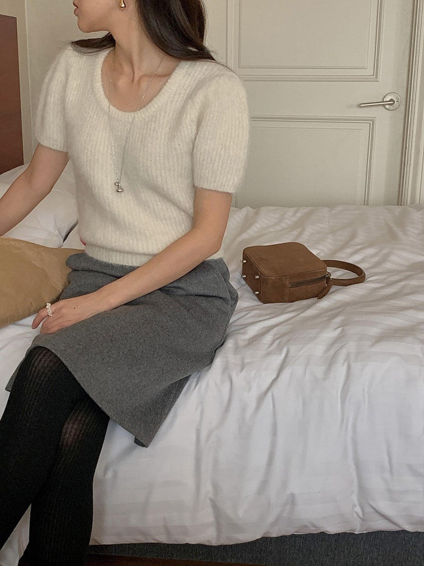 - Uネックと半袖のスリーブ