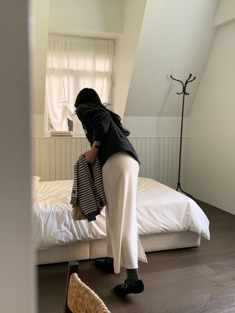 wool maxi skirt-3col