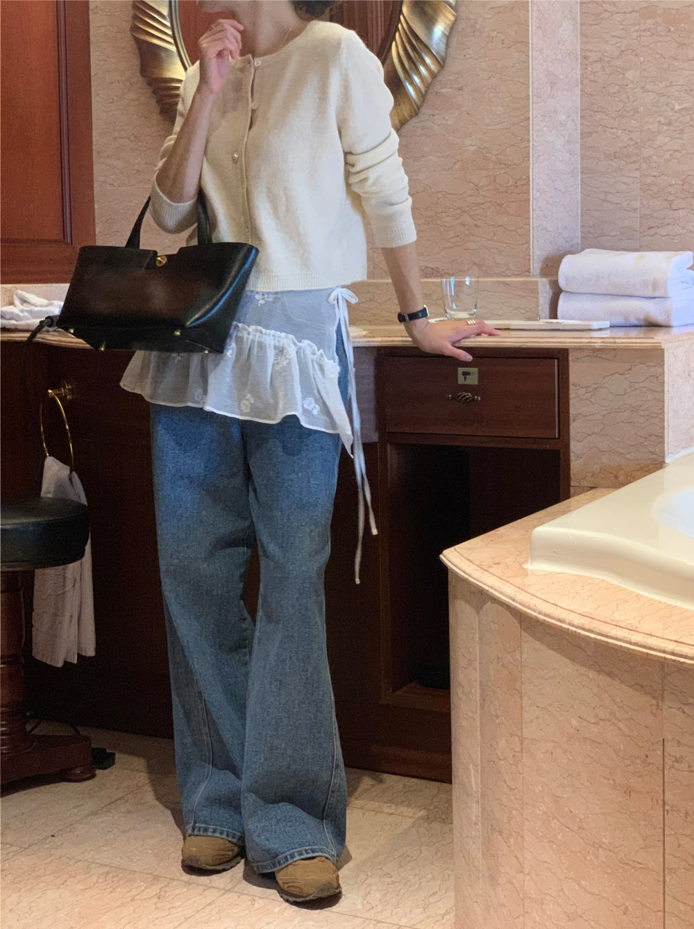 韓国製品の場合はメーカー表記で、ケアラベルがない場合もあります。 混用率と製品管理については商品説明に記載いたしますのでご了承ください。商品のカラーはモニターの環境によって多少異なる場合があります。 最大限実物の色を説明して撮影します。 ニットやコートの特性上、多少の糸混じりがあるかもしれません。微細な縫い目は最大限整理して送るように努力します。上記の事由は返品事由になりません。